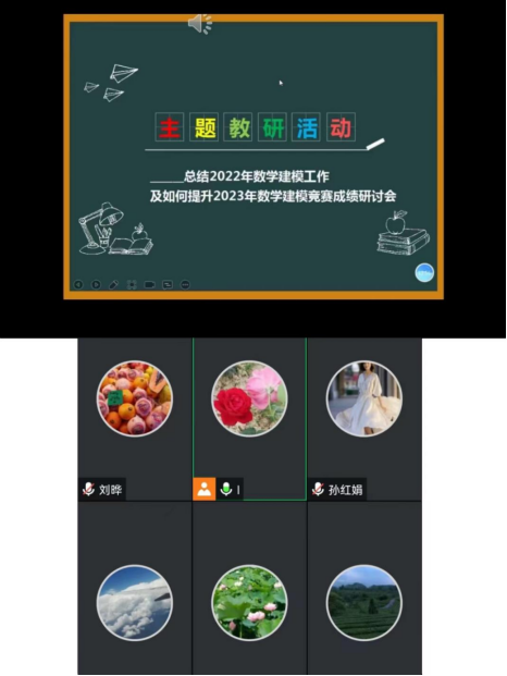 会上,建模负责人刘娟宁对2022全国老员工数学建模竞赛工作做了详细的总结。接着对2023年数学建模工作做了初步的计划安排,教研室其他老师也先后做了发言,表态愿意加入数学建模指导教师团队,不断学习新知识、新技能、新思想,并将其融入到自己的教学工作中,为开创数学建模竞赛的新局面,为应用型、创新型人才的培养做出自己应用的贡献。