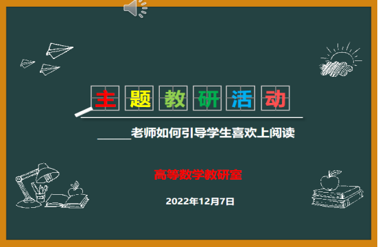 2022年12月7日下午16点,高等数学教研室以线上方式举行了“老师如何引导员工喜欢上阅读”主题教研活动,全体教师参加并做了积极发言交流。