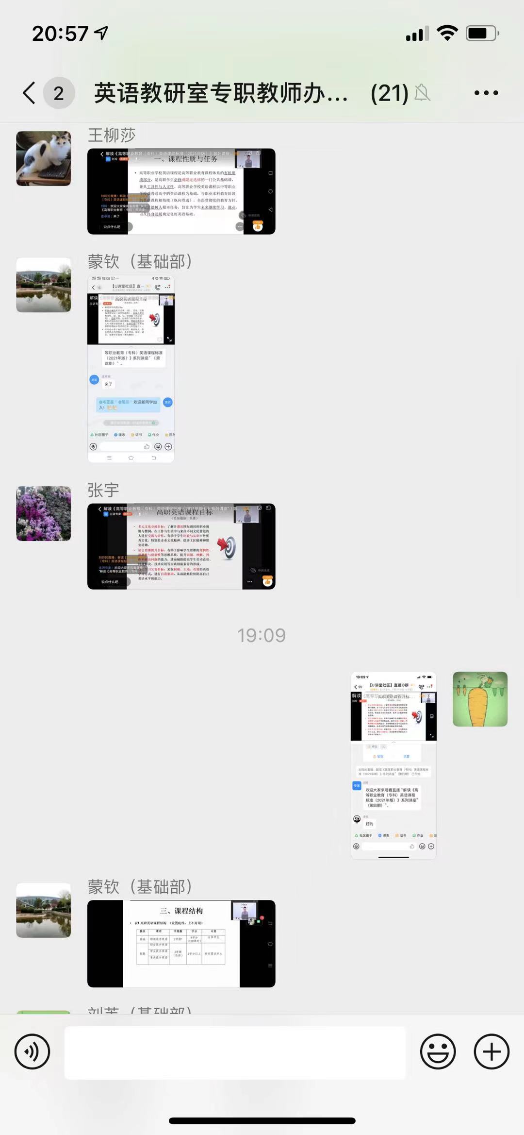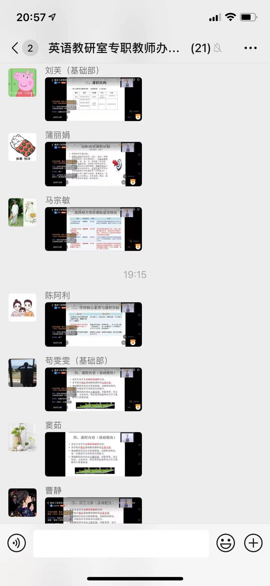为深入学习新课标,全面理解新课标对高职英语教学的新要求,把握新时期新型人才培养方向,深化高职英语教学改革创新,基础课教学部大学英语教研室于2021年5月8日晚19点组织全体教师在线学习了由北京外国语大学中国职业外语教育发展研究中心、外语教学与研究出版社联合举办的解读《高等职业教育(专科)英语课程标准(2021年版)》系列讲座。