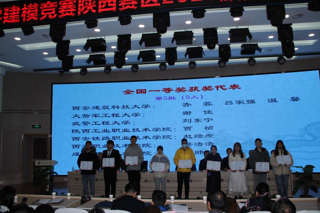 咸阳职院员工赵帅帅(左一)领取全国一等奖