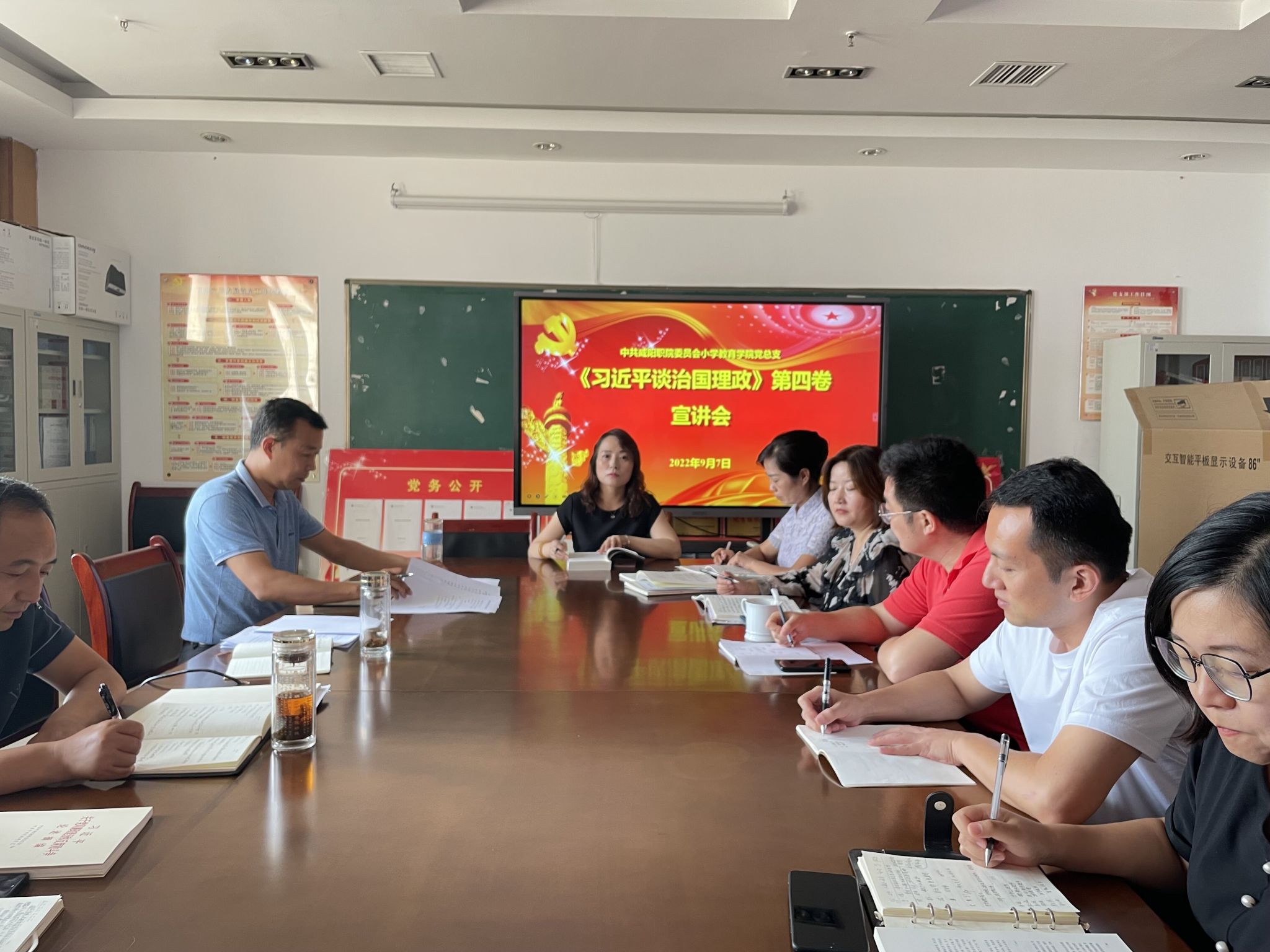 党总支书记宁海成、党总支副书记魏文萍宣讲《习近平谈治国理政》第四卷。