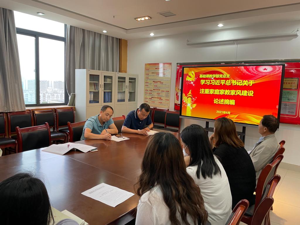 6月9日下午,基础部党总支召开学习贯彻《习近平关于注重家庭家教家风建设论述摘编》座谈会。会议由基础部党总支书记宁海成主持。