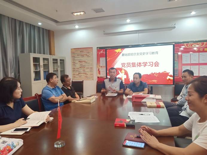 9月15日下午17时,基础部党总支召开党史学习教育集体学习会议,全体党员参加,会议由党总支书记宁海成主持 。