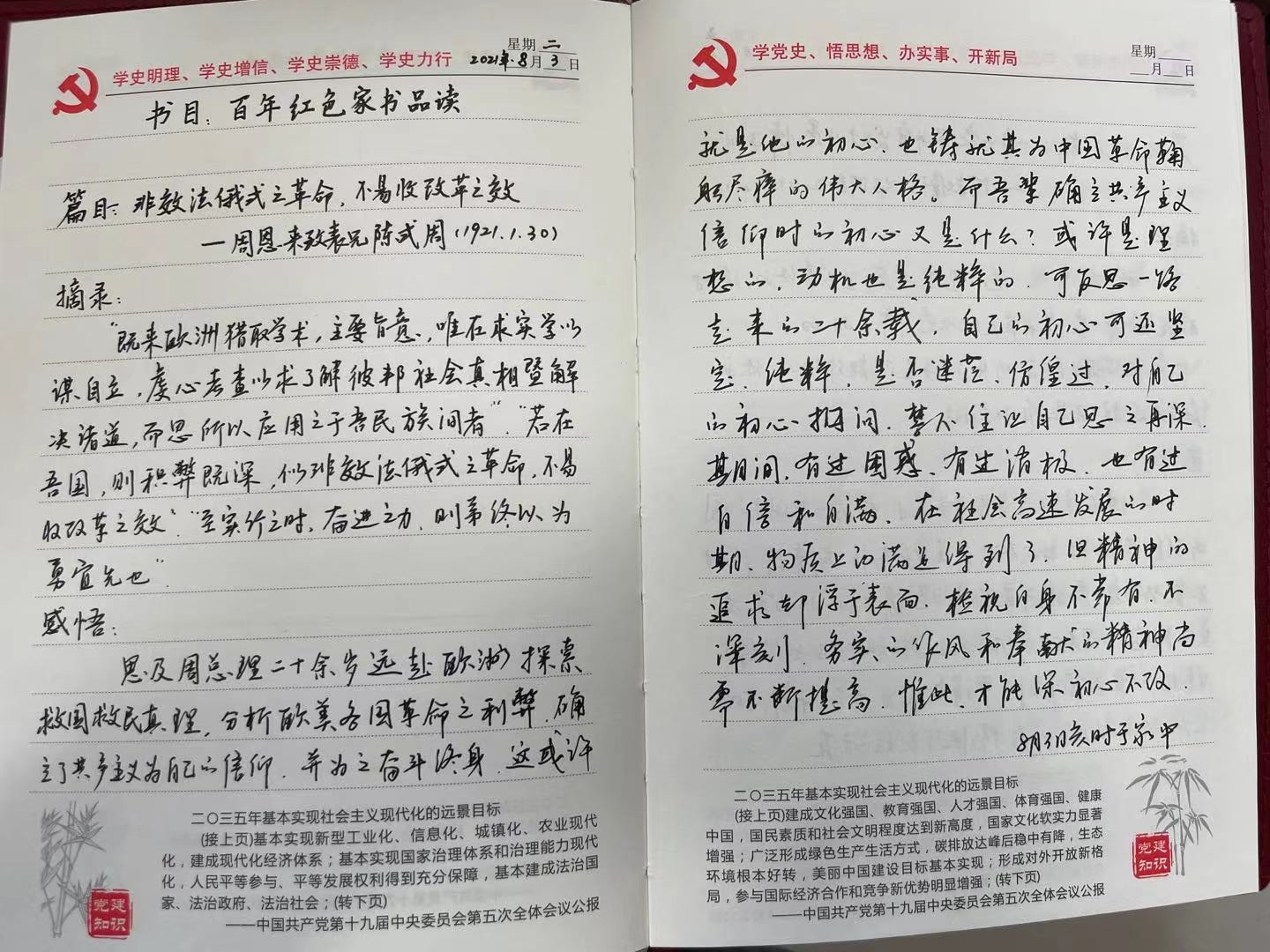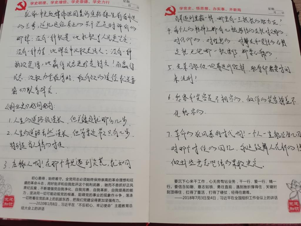 为了创新党史学习教育形式,加强党员党性修养,增强党员党史学习教育积极性,基础部组织开展了“品读红色经典 坚定理想信念”读书分享活动。7月份,基础部党总支采购了37套红色经典读物和读书笔记本,利用党员“过政治生日”活动机会,以礼物的形式由党员选择感兴趣的书籍,利用假期进行阅读。读书分享活动,每两周开展一次,每次安排3—5位党员交流自己读书的感悟和体会,通过品读红色经典,坚定理想信念,汲取奋进的力量。