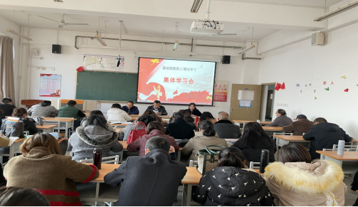 2021年12月8日下午16:10在教学楼715教室,基础部召开了全体教职工政治学习会议,会议由党总支书记宁海成主持,全体教职工参加会议。