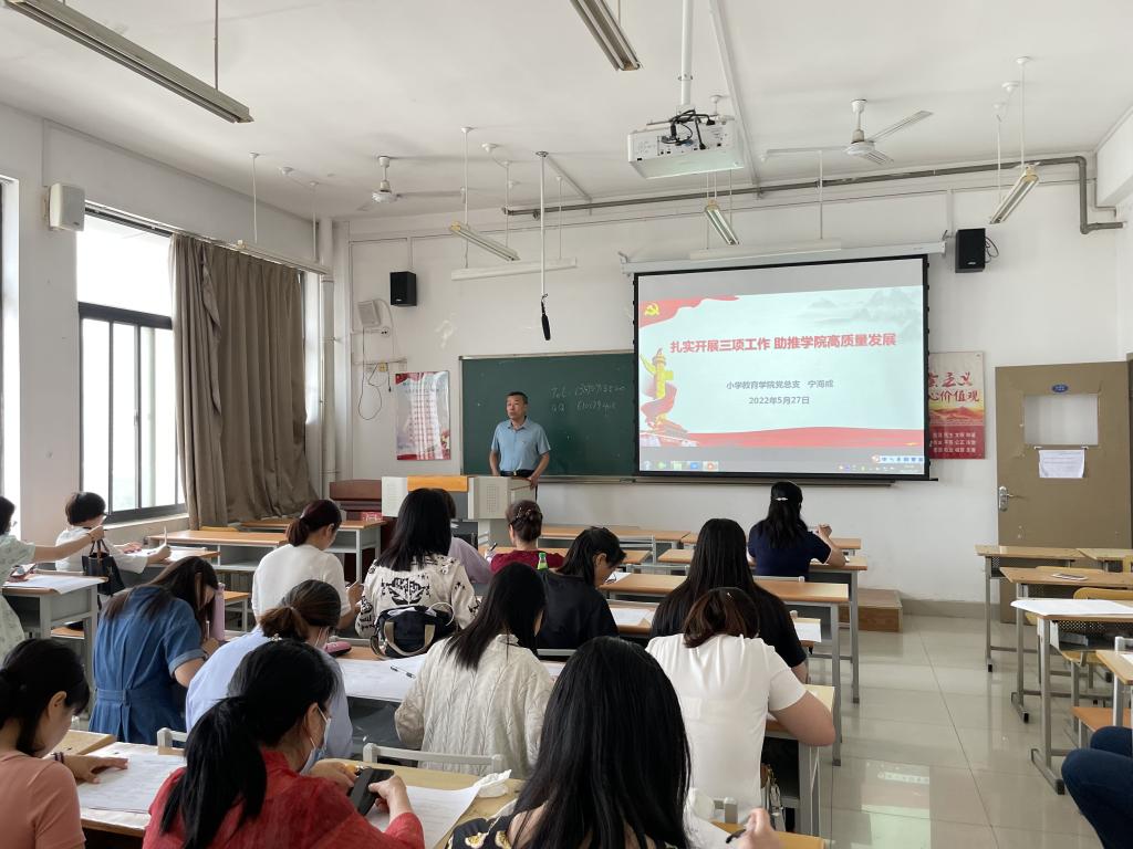 为持续推动“解放思想谋发展,转变作风办实事”主题教育活动,5月27日,党总支书记宁海成以“扎实开展三项工作,奋力推动小教公司高质量发展”为题,讲专题党课,best365全体教职工参加。