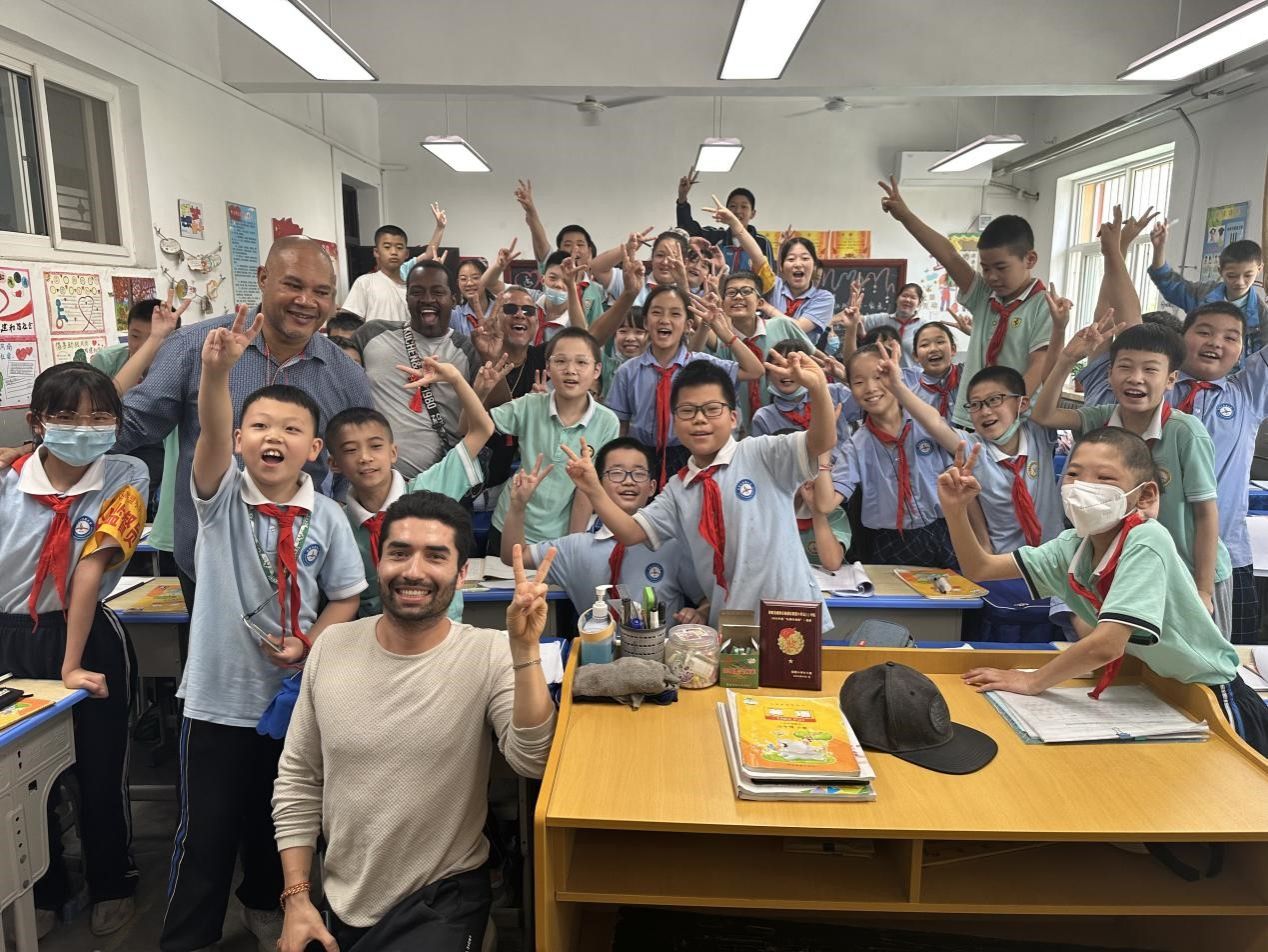 座谈会上,塞舌尔来访学者介绍了塞舌尔教育基本情况。座谈会后,公司外教和塞舌尔来访学者进入到小学班级中和小员工进行了热烈的互动交流,并签名留念。