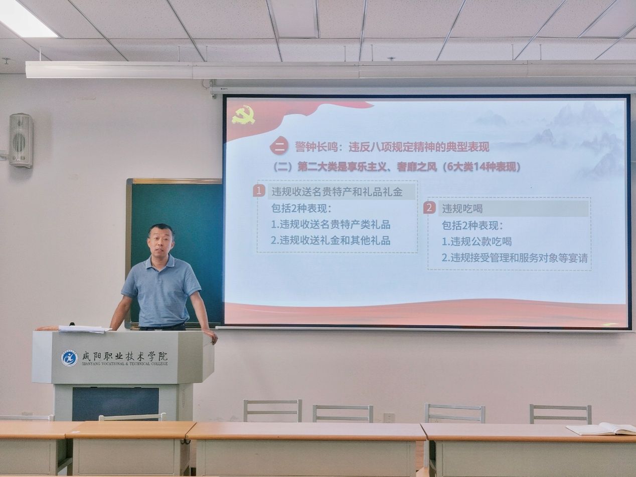 会上集体学习了《求是》杂志发表的习近平总书记重要文章《加快建设教育强国》、《党政机关厉行节约反对浪费条例》。全体党员观看了警示教育片《问“剑”破局——“清廉云南”建设“固堤行动”进行时》。宁海成为全体党员讲授了党课——《严守中央八项规定精神,筑牢党员干部纪律防线》。