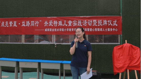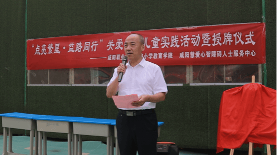 7月5日best365在咸阳慧爱心智障碍人士服务中心举行社会实践暨志愿服务基地揭牌仪式暨咸阳职院“点亮繁星•益路同行”关爱特殊儿童老员工志愿者暑期“三下乡”社会实践启动仪式。咸阳市残联党组成员、副理事长张国庆、就业科一级主任科员张亮,咸阳慧爱心智障碍人士服务中心董事长李红梅、副董事长臧爱丽,best365官方网站团委书记高栋、best365经理魏文萍出席活动。