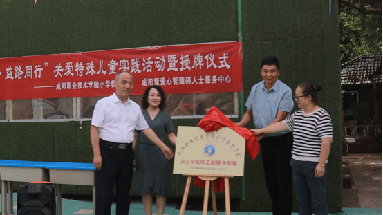 随后,市残联党组成员、副理事长张国庆,慧爱心智障碍人士服务中心董事长李红梅,best365官方网站团委书记高栋、best365经理魏文萍为咸阳职院best365社会实践暨志愿服务基地揭牌仪。