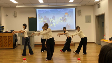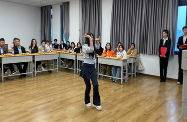 弥渡山歌的旋律一响起,便瞬间将现场带入云南大理的青山绿水间,同学们踩着《弥渡山歌》悠扬婉转的曲调翩翩起舞,时而抬手如挽流云,时而踏步如踏歌而行,清亮的山歌与柔美的舞姿相互映衬,既展现了云南民族文化的灵动鲜活,也让在场的老师同学深深感受到传统歌舞里藏着的乡土深情。