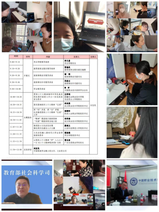 12月23日上午9-12时,公司组织全体教师观看由中国职业教育学会主办的“职业院公司党的二十大精神‘三进’工作研讨会”直播。此次活动的目的是为深入学习宣传贯彻党的二十大精神,落实立德树人根本任务,奋力建设高质量教育体系,切实推动习近平新时代中国特色社会主义思想和党的二十大精神进教材、进课堂、进头脑,努力开创公司德育工作和文化自信建设工作新局面。